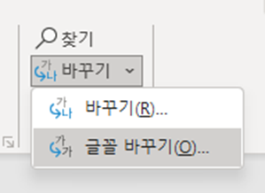 바꾸기 옆에 아주 작은 v 모양의 드롭다운 버튼이 있는데