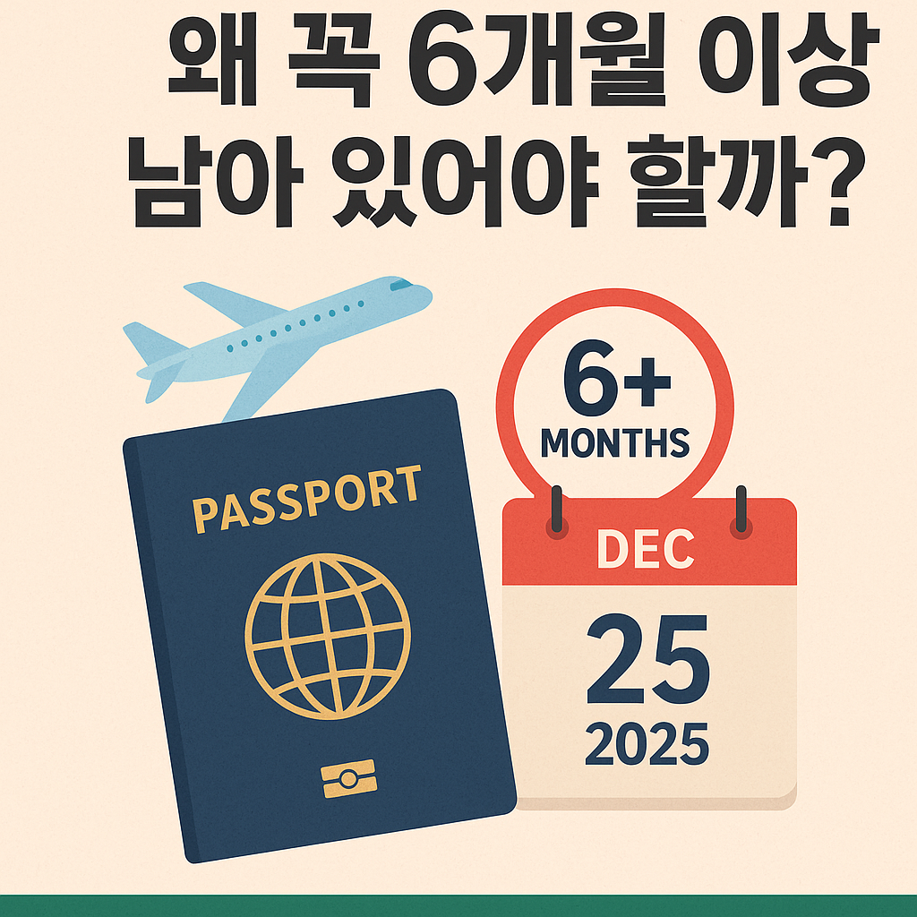 - 일부 국가는 3개월(예: 유럽의 쉔겐협정 지역)만 요구하기도 하지만, 6개월 이상 남겨두는 것이 안전한 기준입니다.