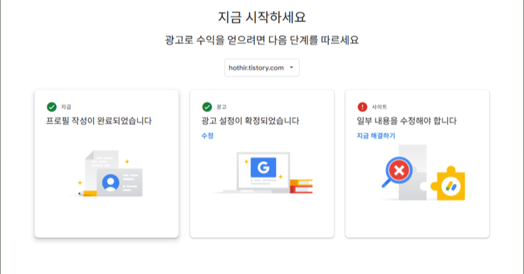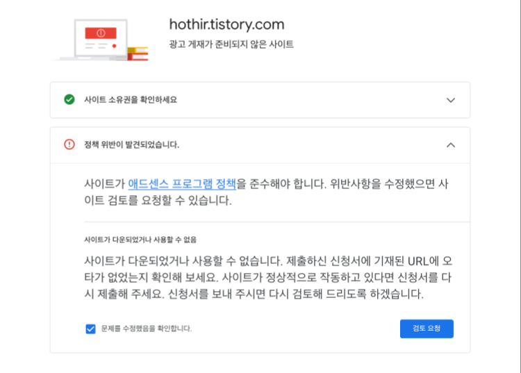 그렇게 며칠간의 심사(사이트의 광고 게재 가능 여부 검토) 끝에...