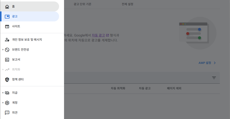1. 구글 애드센스 '광고'탭으로 가세요.